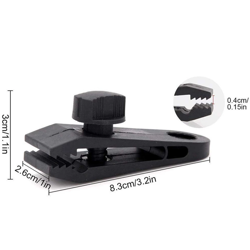 Простота установки и удаления: брезентовые зажимы, сверхмощные, легко устанавливается или снимается, Просто затяните или ослабьте винтовую ручку для регулировки на толстых или тонких брезентах.