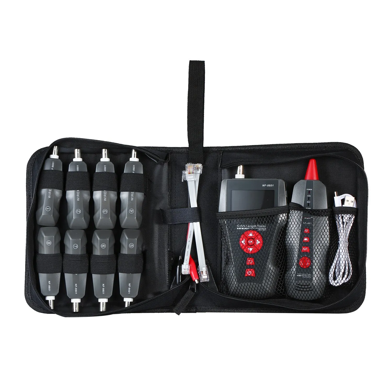 Этот тестер является многофункциональным проводным трекером, включая кабельный излучатель и приемник. Он имеет такие функции, как отслеживание телефонного провода, отслеживание сетевого провода, отслеживание кабеля питания, проверка сетевого провода и т. д. и производит быстрые и точные измерения. Это необходимый инструмент для тестирования телекоммуникационной инженерии, электропроводки и обслуживания сети. Особенности: Можно проверить телефонный провод, Сетевой провод, кабель coaxil. ЖК-дисплей с подсветкой для удобного чтения. С функциями тестирования и калибровки PING & POE. Функция вспышки порта для определения местоположения сетевого порта на концентраторе или переключателе. Включает 8 шт. удаленных адаптеров, высокая эффективность работы. Оснащен кабелями RJ11 и RJ45 и с интерфейсом на передатчике. Функция проверки сетевого провода, чтобы определить нормальное/короткое замыкание/открытое замыкание/пересечение. Легко и быстро найти точку останова, не открывая крышку провода. 160 групп хранения данных и функции передачи данных. Индикация низкого заряда батареи и функция автоматического отключения питания. Характеристики: Материал: АБС-пластик Дисплей: ЖК-дисплей Вход: AC110-220V, 1 Гц Выход: 5 В Рабочая температура: 0 ~ 50 ℃ Температура хранения: -10 ~ 50 ℃ Точность: 3% (после калибровки) Совместимые разъемы: RJ11, RJ45, BNC Передача сигнала: многочастотный импульсный Обнаружение короткого замыкания/открытого замыкания: Да Макс. Расстояние карты: 2000 м Макс. Расстояние отслеживания: 2000 м Макс. Расстояние длины кабеля: 1000 м Минимальное расстояние калибровки: 10 м Встроенный литиевый аккумулятор: эмиттер: 1 * 3.7V1800mAh; Приемник: 1 * 3.7V1800mAh Размер эмиттера: прибл. 17*8,5*2,7 см/6,7*3,3 * 1.1in Размер приемника: прибл. 18*5,5*2,3 см/7,1*2,2 * 0.9in Вес эмиттера: прибл. 204 г/7,2 унции Вес приемника: прибл. 121 г/4,3 унции Размер посылка: прибл. 27,2*20*9,3 см/10,7*7,9*3,7 дюйма Вес посылка: прибл. 1073 г/37,8 унций Посылка: 1 * эмиттер 1 * приемник 1 * кабель RJ11 1 * кабель RJ45 1 * тестовая линия зажима крокодила 8 * удаленные адаптеры 1 * USB кабель 1 * сумка для переноски 1 * Руководство пользователя (на английском языке)