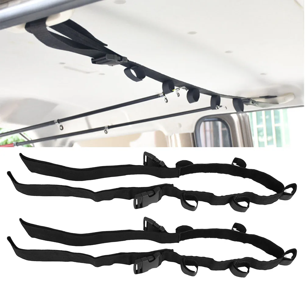 Изготовлен из качественного нейлонового материала, легкий, прочный и долговечный. Можно положить 5 удочек, чтобы сэкономить место в автомобиле. Регулируемая длина, подходит для различных моделей. Легкий и портативный, прост в установке и использовании. Полезный аксессуар для хранения удочки, легко получить удочку.
