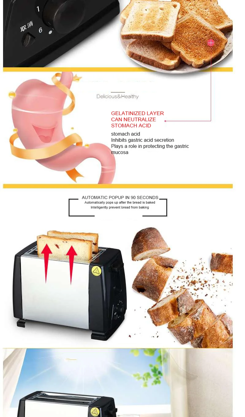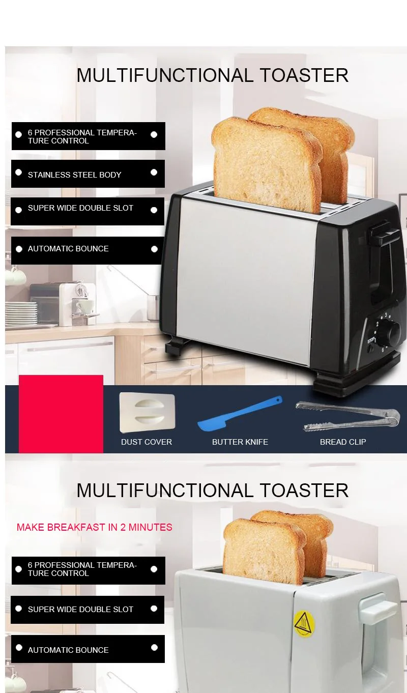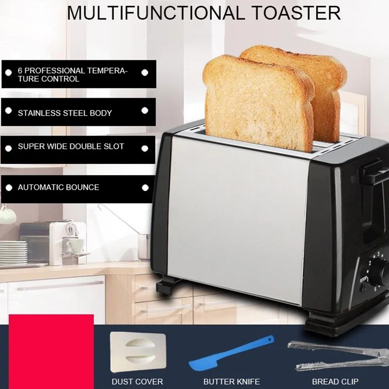 2 ломтика тостер Автоматическая нержавеющая сталь быстрый нагрев хлеб тостер бытовой многофункциональный чайник для завтрака Отопление хлеб