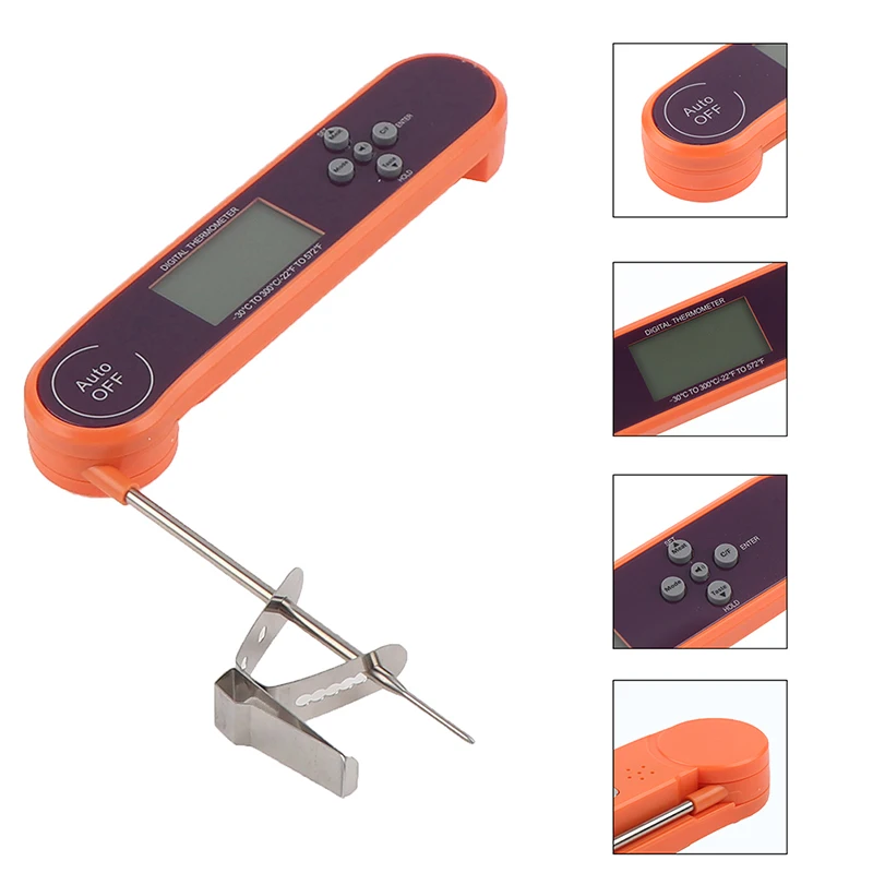【Температура голосового вещания 】-функция голосового термометра помогает слышать температурную форму голосового вещания там, где слишком много дыма, особенно удобнее и дружелюбнее для пожилых людей с дальнозоркостью. Цифровой термометр Uzone со складным зондом из нержавеющей стали ранга 4,6 дюйма и функцией автоматического включения/выключения, откройте зонд для включения, сложите зонд для выключения, просты в использовании, хранении и переноске.