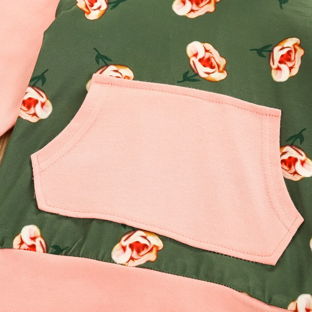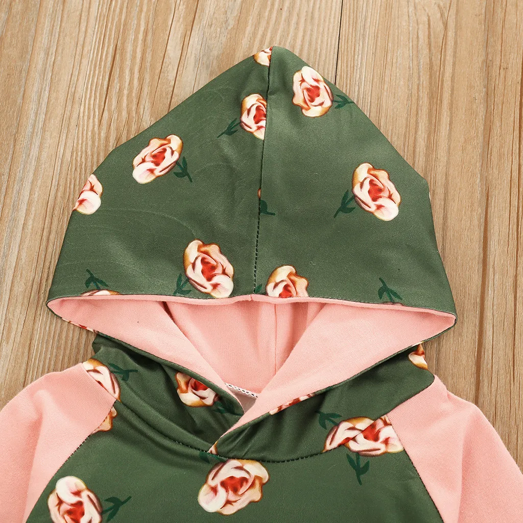 Комплект одежды для маленьких девочек, топы с капюшоном и цветочным рисунком для малышей, штаны, повязка на голову, комплект из 3 предметов