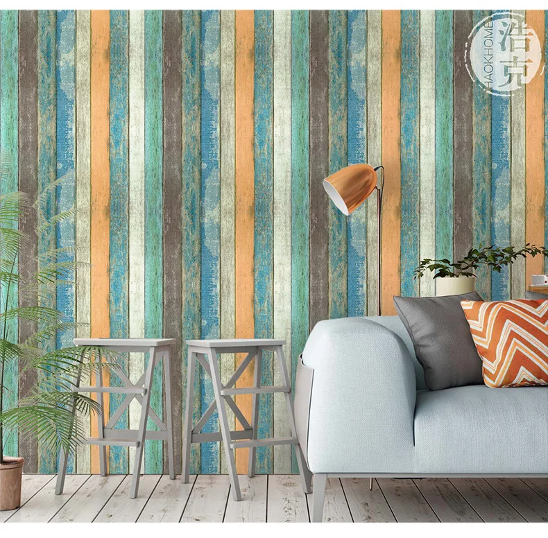 Средиземноморские вертикальные полосы самоклеющиеся обои под дерево ретро ностальгические деревянные доски для гостиной фон стикер на стену