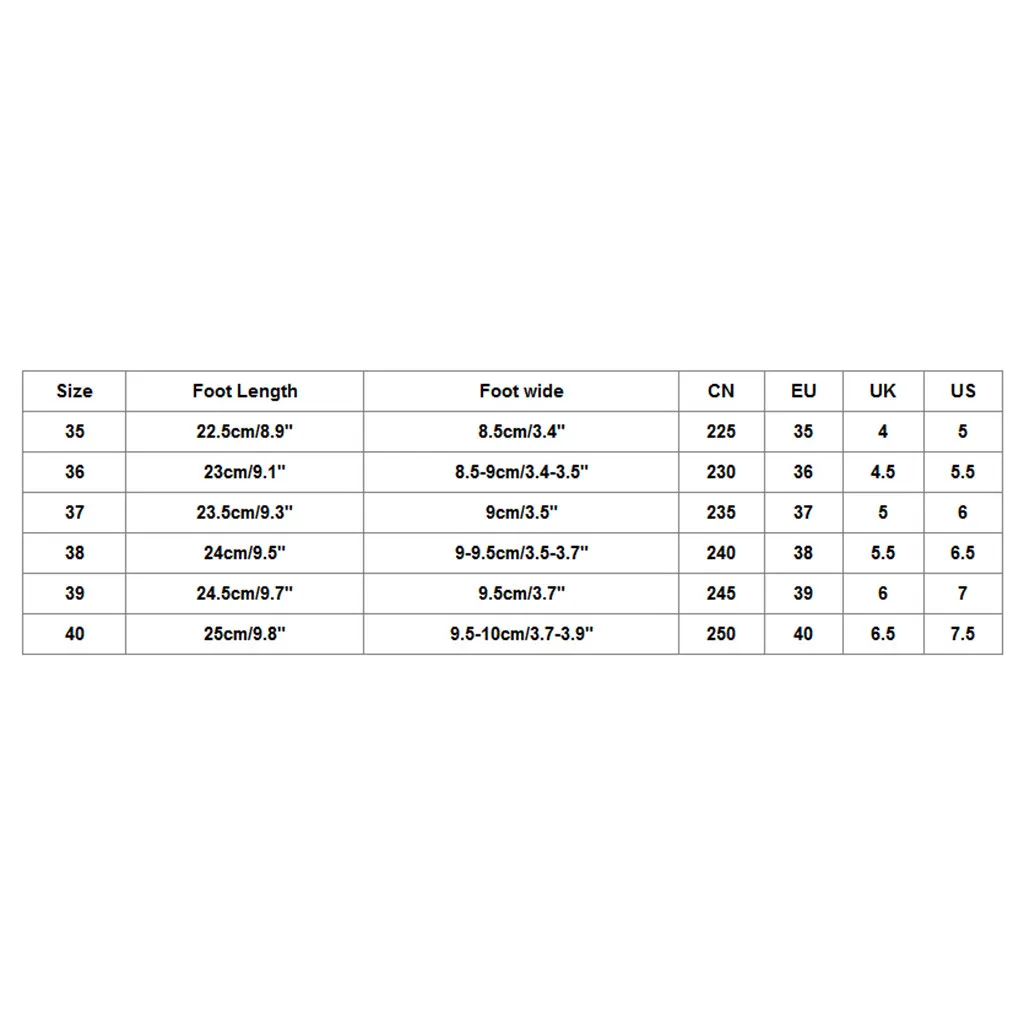 Размер Длина стопы Широкая стопа CN ЕС Великобритания США 35 22,5 см/8,9 дюйма 8,5 см/3,4 дюйма 225 35 4 5 36 23 см/9,1" 8,5-9 см/3,4-3,5 дюйма 230 36 4,5 5,5 37 23,5 см/9,3 дюйма 9 см/3,5 дюйма 235 37 5 6 38 24 см/9,5 дюйма 9-9,5 см/3,5-3,7 дюйма 240 38 5,5 6,5 39 24,5 см/9,7 дюйма 9,5 см/3,7 дюйма 245 39 6 7 40 25 см/9,8 дюйма 9,5-10 см/3,7-3,9 дюйма 250 40 6,5 7,5