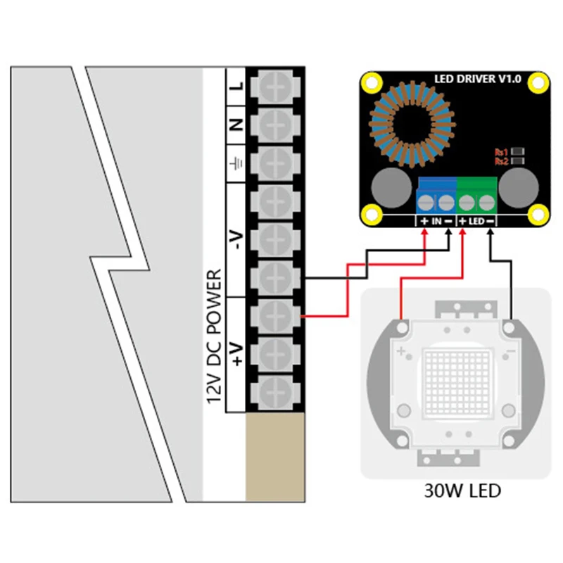 Светодиодный драйвер FYS Boost-это экономичный и простой в использовании драйвер с максимальной выходной мощностью 60 в/5A (для замены сопротивления Rs вручную). По умолчанию в этом чехле предусмотрен ток 900мА + 5%, который используется для модуля 30 Вт светодиодный (10 серий, 3 параллельных).