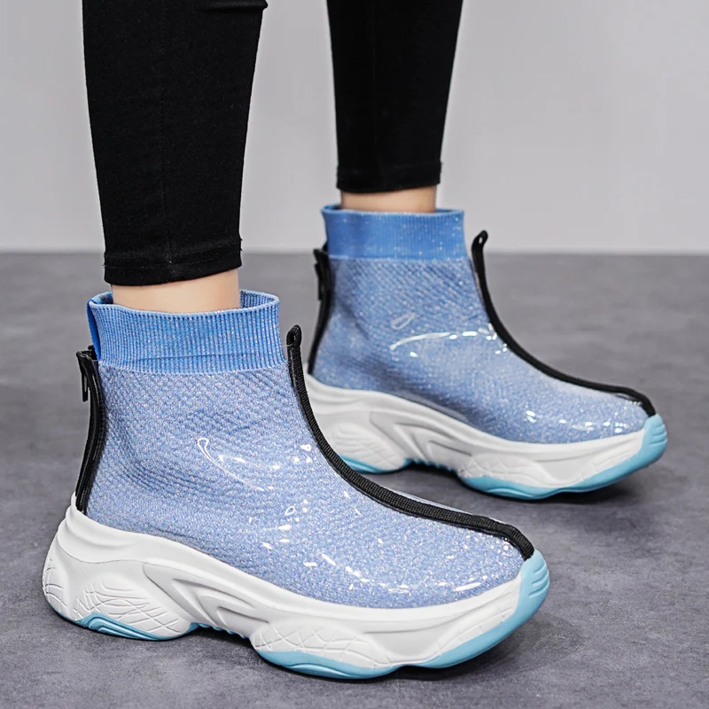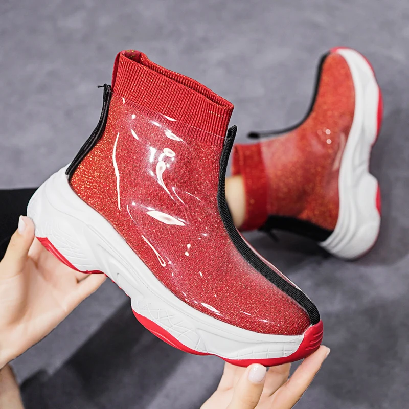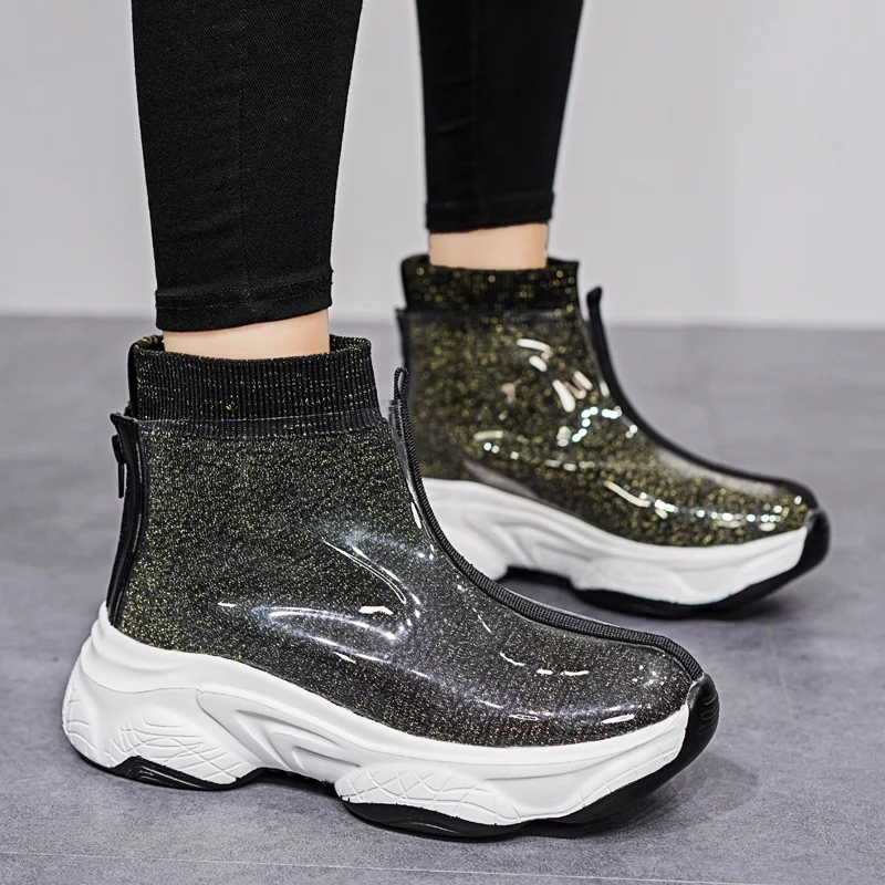 STS/Женская обувь; Кроссовки на танкетке; femme; Обувь с блестками; Модная спортивная обувь для девочек; Женские кроссовки; Водонепроницаемая Обувь