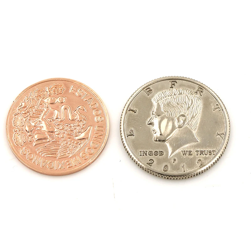 Положите полдоллара и медный мексиканский центаво в руки зрителей.