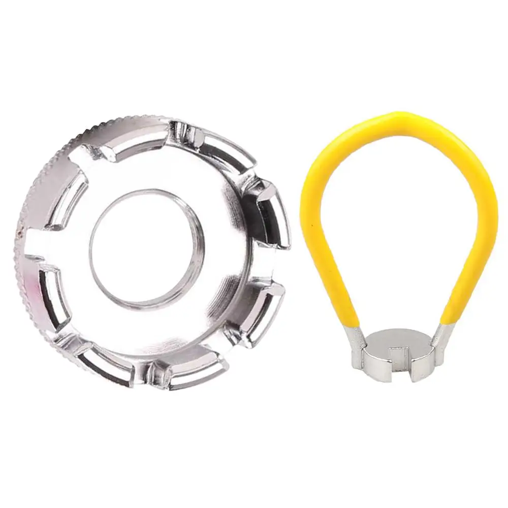Высококачественный спицевый гаечный ключ: спицевый гаечный ключ изготовлен из железа, высокая твердость, легко переносится, поверхность покрыта никелем, не легко ржавеет.