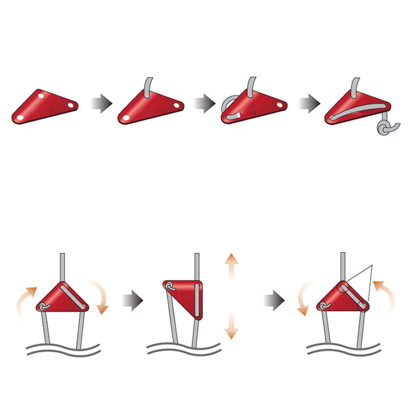 * Треугольная застежка может надежно закрепить веревку для палатки.