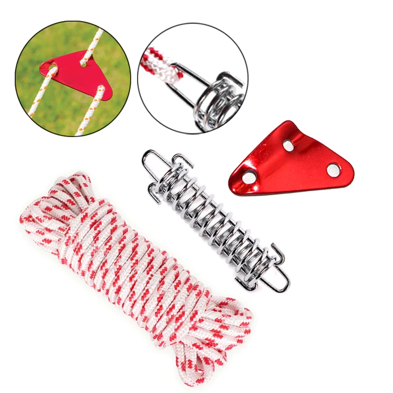 * Пружинный натяжитель может помочь вам удобно регулировать веревку для палатки.
