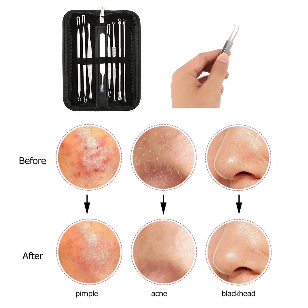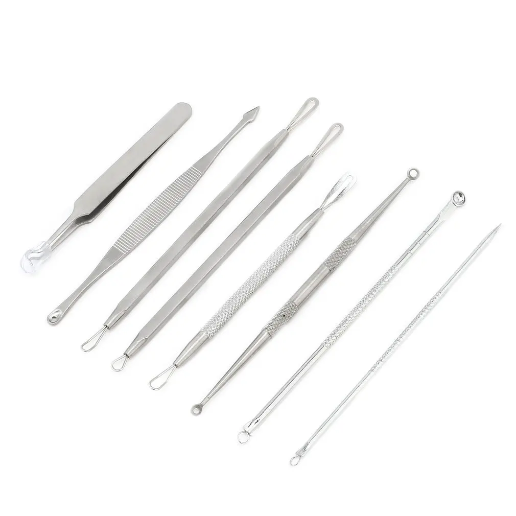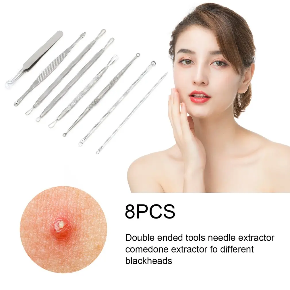 С 8 различными инструментами, подходит для пирсинга, прижима и удаления акне, угрей, прыщей и пустулы.