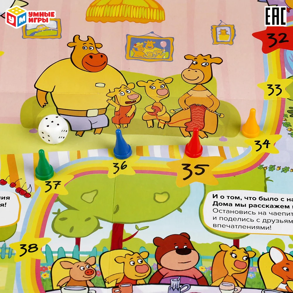 Настольная игра-ходилка «Оранжевая корова. Дружная семья» ТМ «УМка» – учимся считать с любимыми героями.