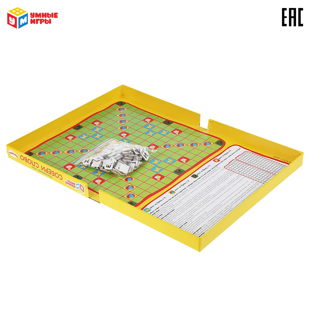 The game is designed by players from 2 to 5 people. Rules and tasks of the game: each player has 7 chips with letters on his hands, and with their help on the playing field, players will take turns to lay out the words. To win, the player needs to score a pre-agreed number of points as quickly as possible. For each word folded, players receive points, the exact amount is determined based on special parameters (for example, there is a prize of 20 points for using all their seven chips at once in one move, bonus points for the use of color cells and other bonus situations).