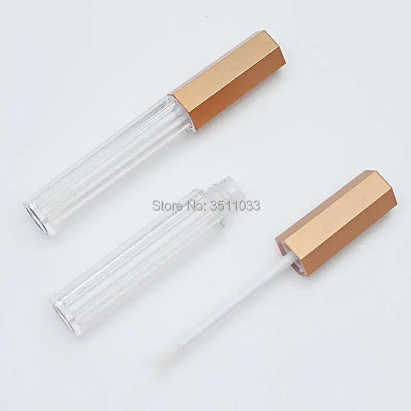 30/50/100pcs 4 мл прозрачные шестиугольник косметический блеск для губ трубки пустые Пластик блеск для губ палочка трубка многоразового корпус черного и золотого цвета розового золота