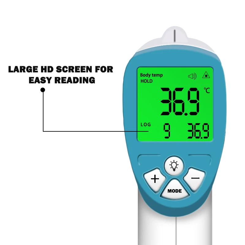 <Бесконтактный инфракрасный термометр для тела: вам не нужно контактировать с телом при использовании этого термометра. Он может быть обнаружен на расстоянии 50-150 мм.
