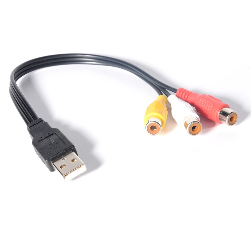 USB к 3RCA кабель, 0,25 м USB папа к 3 RCA гнездовой сплиттер Аудио Видео AV композитный кабель адаптера для ТВ/ПК