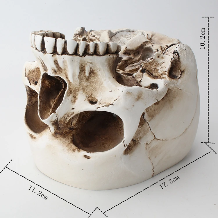 Product name: Skull Flower Pot Article number: MH19022 Material: resin Commodity code: 6971086880555 Net weight/gross weight: 360g/460g Product size: 11.2*17.3*10.2cm Packing size: 14*21.2*15cm