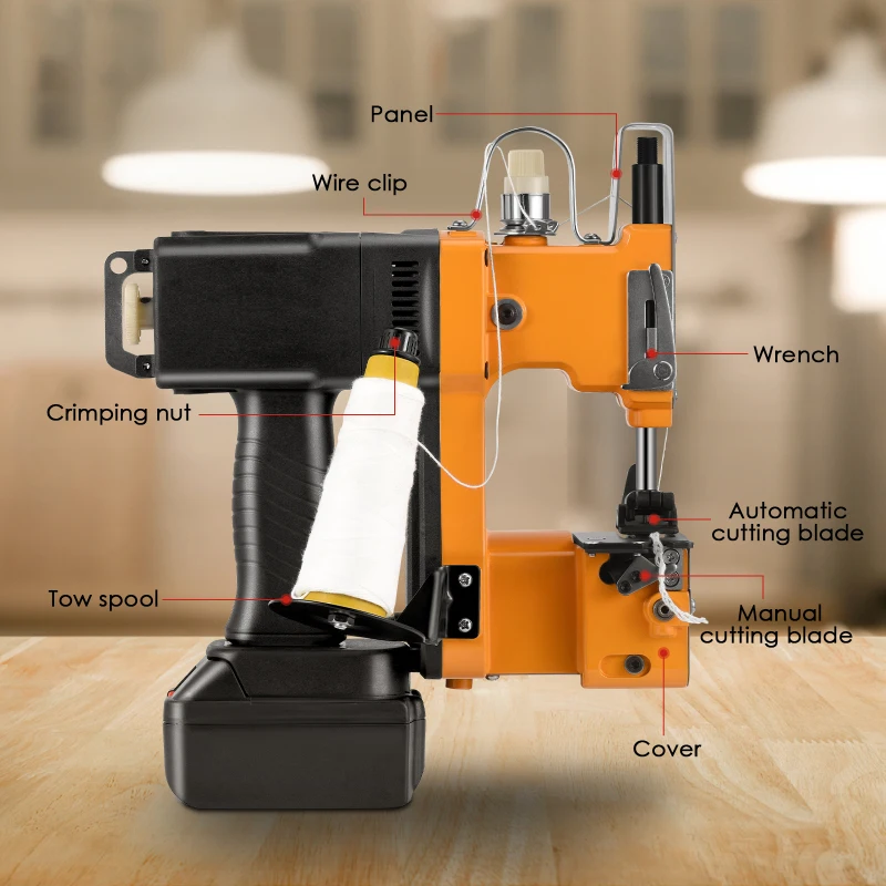 Электрическая промышленная упаковочная машина для швейной машины с литиевой батареей 2200 мАч, портативная швейная машина для мешков (машина + 1 батарея)