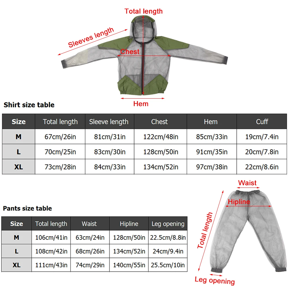 Всесторонняя защита: одна куртка с капюшоном, одни штаны и пара перчаток для защиты вас от насекомых и жуков во время охоты, кемпинга и рыбалки.