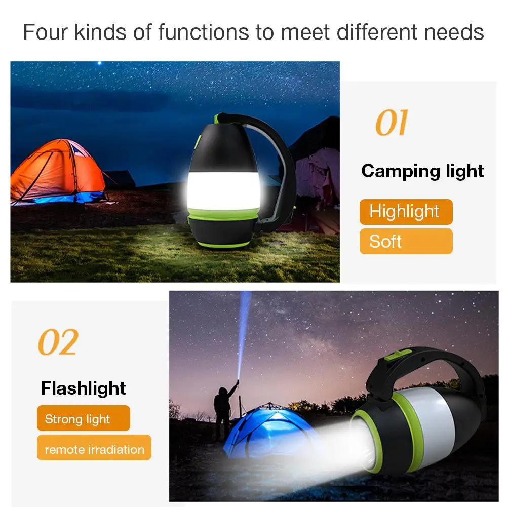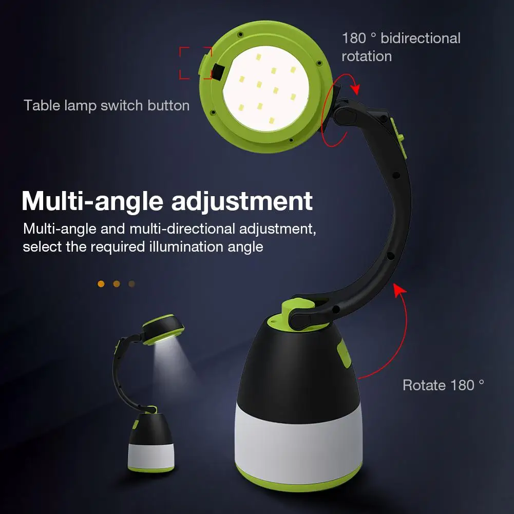 1. Многофункциональное использование: светильник может использоваться как светильник для кемпинга, светильник для вспышки, настольная лампа и внешний аккумулятор, которые объединены в одну.