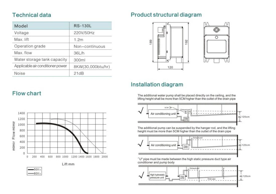 Если водяной насос является ненормальным, кондиционер будет продолжать остыть и привести к утечке потолка. Для управления машиной, он непосредственно подключен к соответствующей розетке уровня воды
