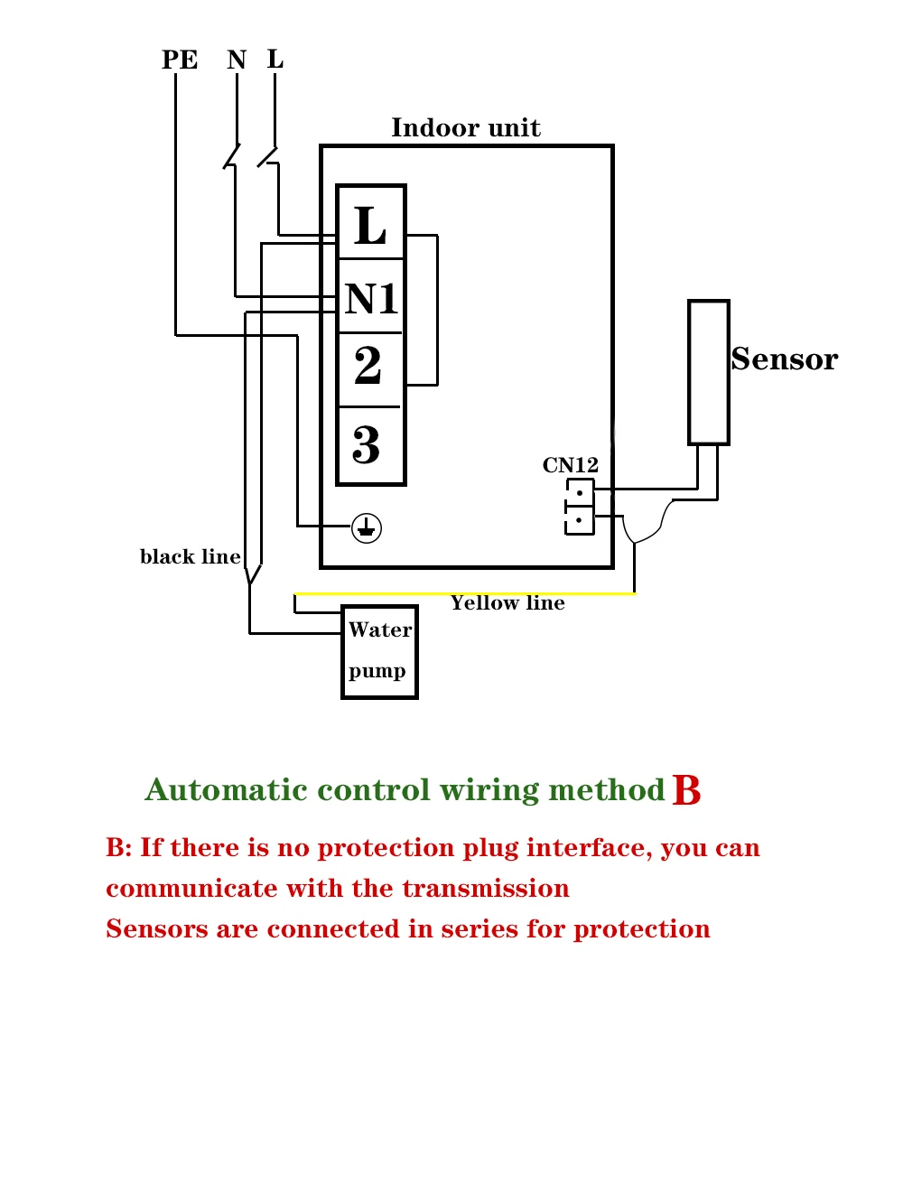 Желтая линия-отдельный переключатель уровня воды линия (0,5/100V). Для водяных насосов с автоматическим управлением, если эта линия не подключена, это не повлияет на нормальную работу насоса.