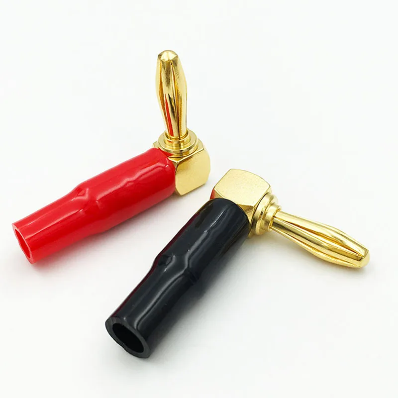 [4 Упак.] высококлассный медный правый угол/90 градусов винт типа Банан вилка/СПИКЕР кабельный разъем [Banana De L]