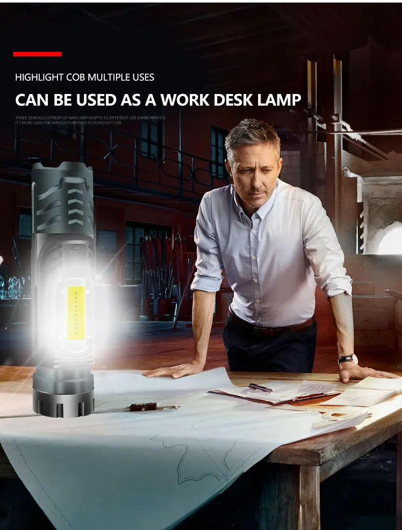 Испытательная лампа COB 3 шестерни: сильный светильник-слабый светильник-вспышка"