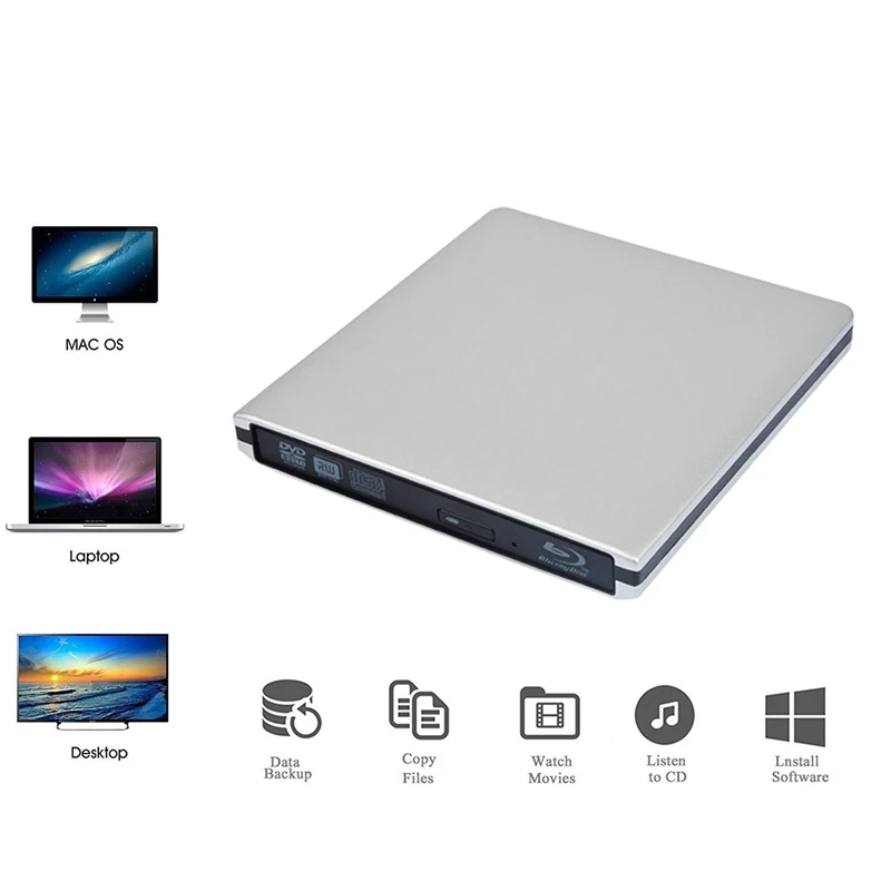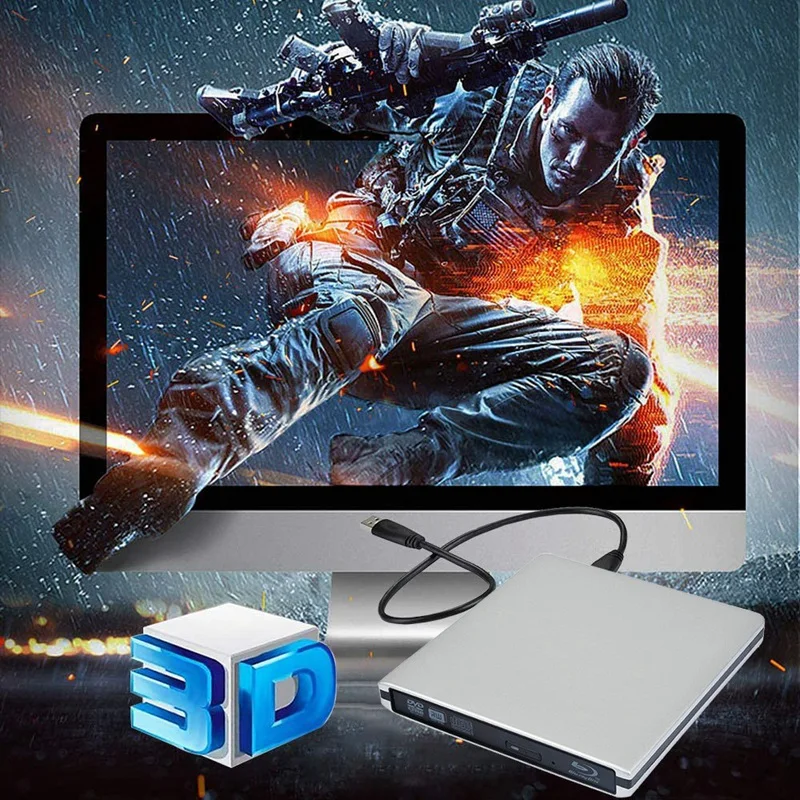 Внешний Blu Ray DVD привод 3D USB 3,0 Портативный Bluray DVD CD горелка RW CD ряд для ОС Windows 7 8 10 Linxus PC