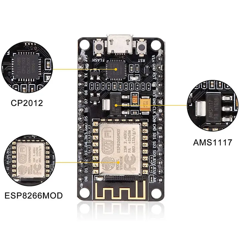 Четыре режима доступа к SPI flash: ESP8266 поддерживает четыре различных режима доступа к SPI: DIO, DOUT, QIO и QOUT. Функция: плата ESP8266 NodeMcu имеет мощную встроенную функцию обработки и хранения И может быть интегрирован с датчиками и другими специфическими устройствами приложения через его GPIO.ESP8266 NodeMcu ESP8266 модуль (4), ESP-12E NodeMcu LUA CP2102 Интернет WiFi плата может быть использована с Arduino IDE/ Микропитон