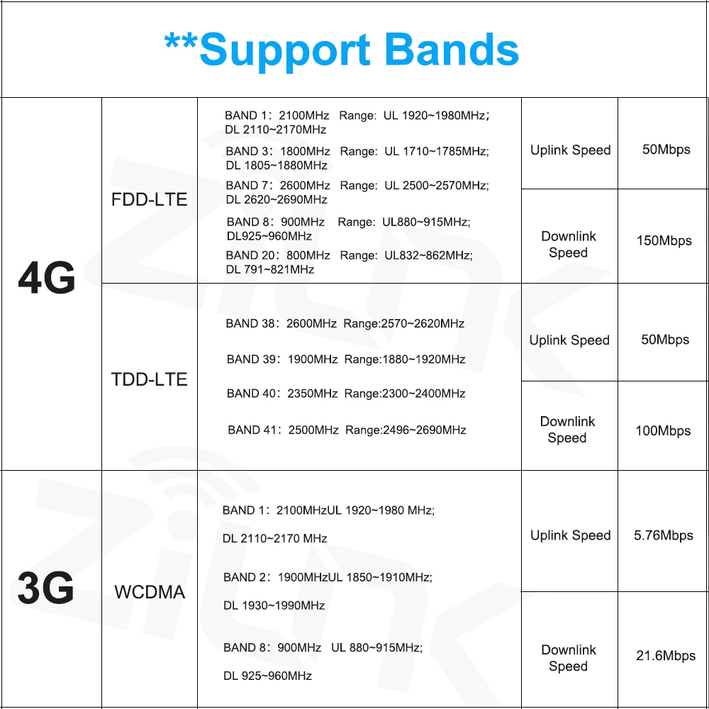 FDD-LTE/TDD-LTE: восходящий 50M вниз 150 Мбит/с