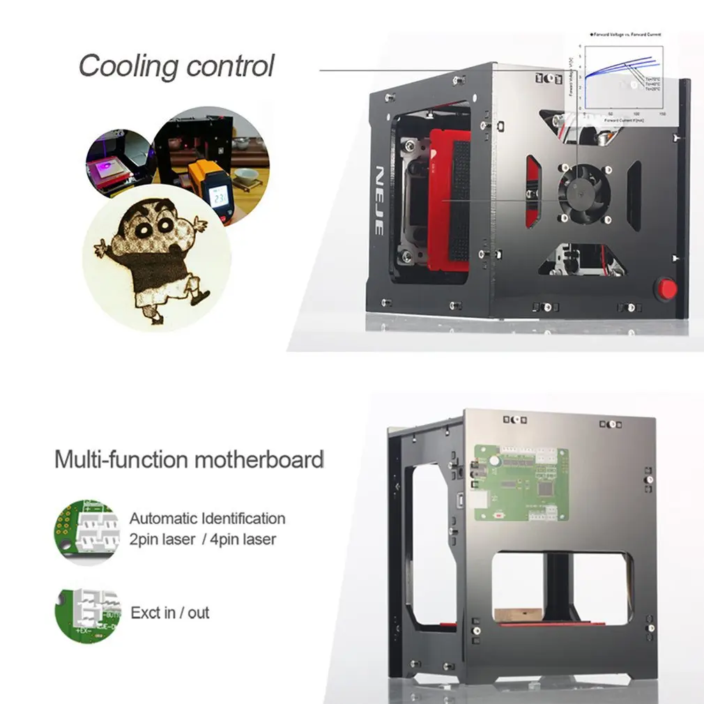 Особенности: Описание: 490x490 принт с высоким разрешением, мягкий материал может Распечатать 3D и градиентный эффект. В течение одного времени, NEJE разработала Профессиональный IC и радиатор, время резьбы будет длиться гораздо дольше, чем другие лазерные и более стабильные. Длина волны лазера: 405нм; Посылка включает в себя: 1 * гравировальный станок 1 * защитные очки 1 * USB кабель 1 * гаечный ключ 1 * маркер для белой доски 2 * деревянный блок 2 * Бумага Примечания: Не удается подключиться к мобильному приложению.