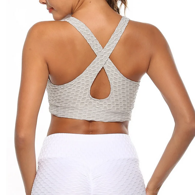 Сексуальный красный спортивный бюстгальтер для занятий йогой, топ для фитнеса, тренажерного зала, пуш-ап, спортивный бюстгальтер для активного отдыха, Женский жаккардовый бюстгальтер с пузырьками.