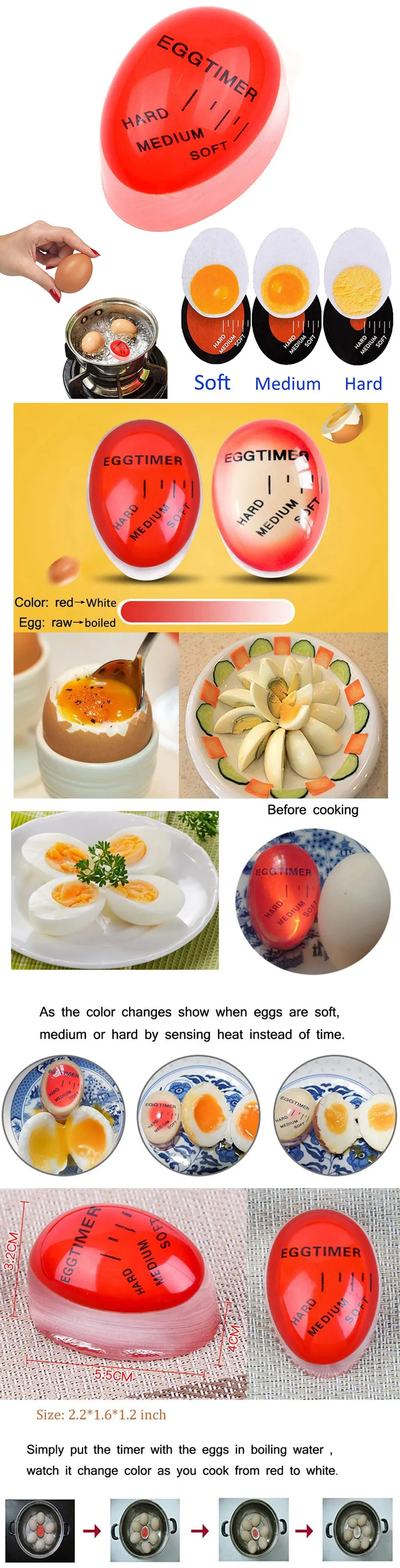 1 шт., таймер для яиц, идеальная смена цвета, кухонный таймер, мягкие вареные яйца, приготовление пищи, экологически чистые смолы, таймер для яиц, красный таймер, инструменты