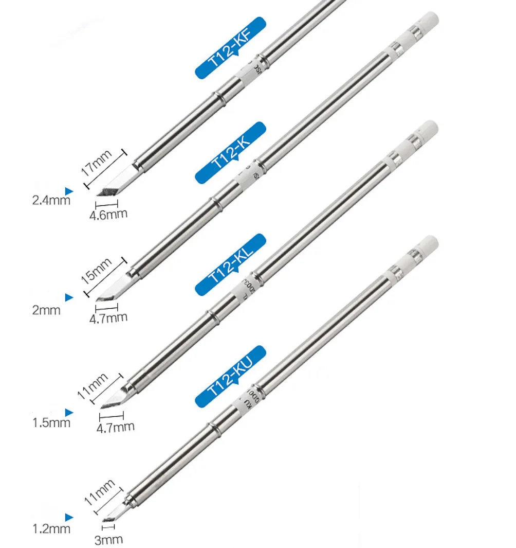 1. Паяльная головка T12-это Композитное сварочное сопло, которое является сочетанием нагревательного сердечника, датчика температуры и паяльной головки.