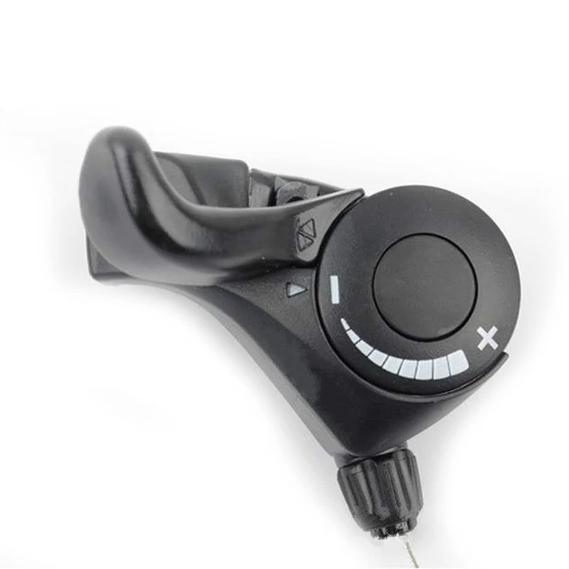 4. Правый переключатель-это триггер-тип 7 скоростей, с одним рычагом для переключения вниз и кнопкой большого пальца для сдвига вверх. Левое Переключение-это трение/Трещотка рычагов большого пальца для тройных коленчатых наборов.
