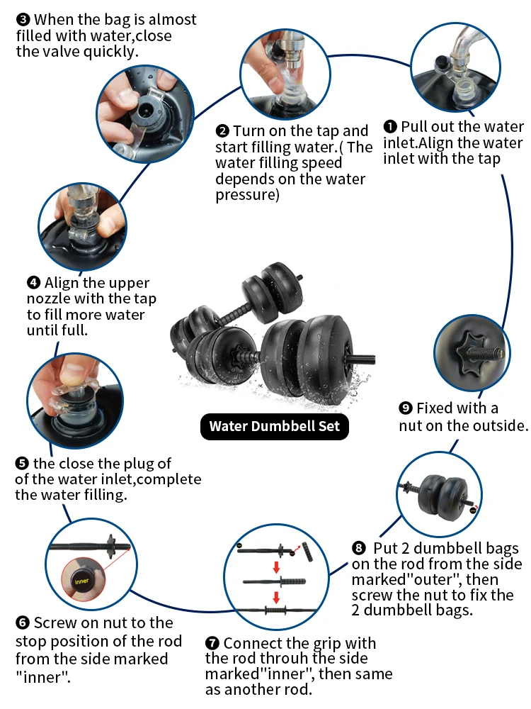 Набор водные гантели может помочь вам создать изысканные ограниченными физическими, портативный, и обеспечивает экономию места, и может быть помещен у себя дома или в офисе для обучения персонала.