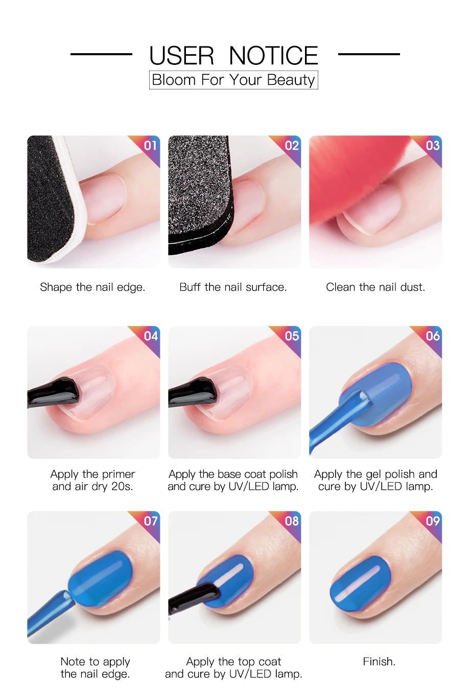 -1. Shape the nail. Lightly buff the surface of the nail plate. Sanitize.To Remove: