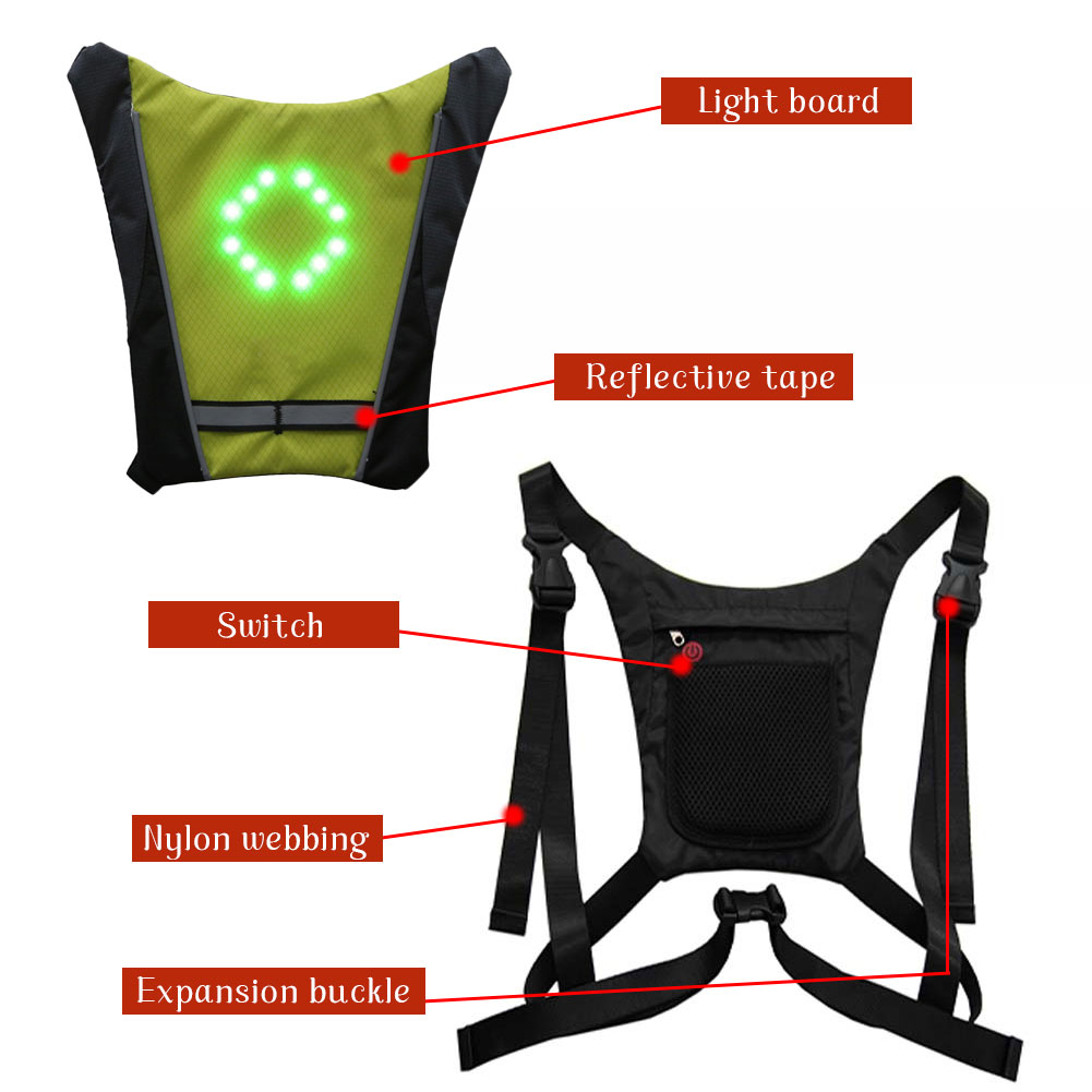 * 3. Светодиодный рюкзак с дистанционным оповещением похож на сигнал дорожного движения; Когда вы хотите Повернуть влево или вправо или остановить, соответствующий сигнал будет отправлен через пульт дистанционного управления.