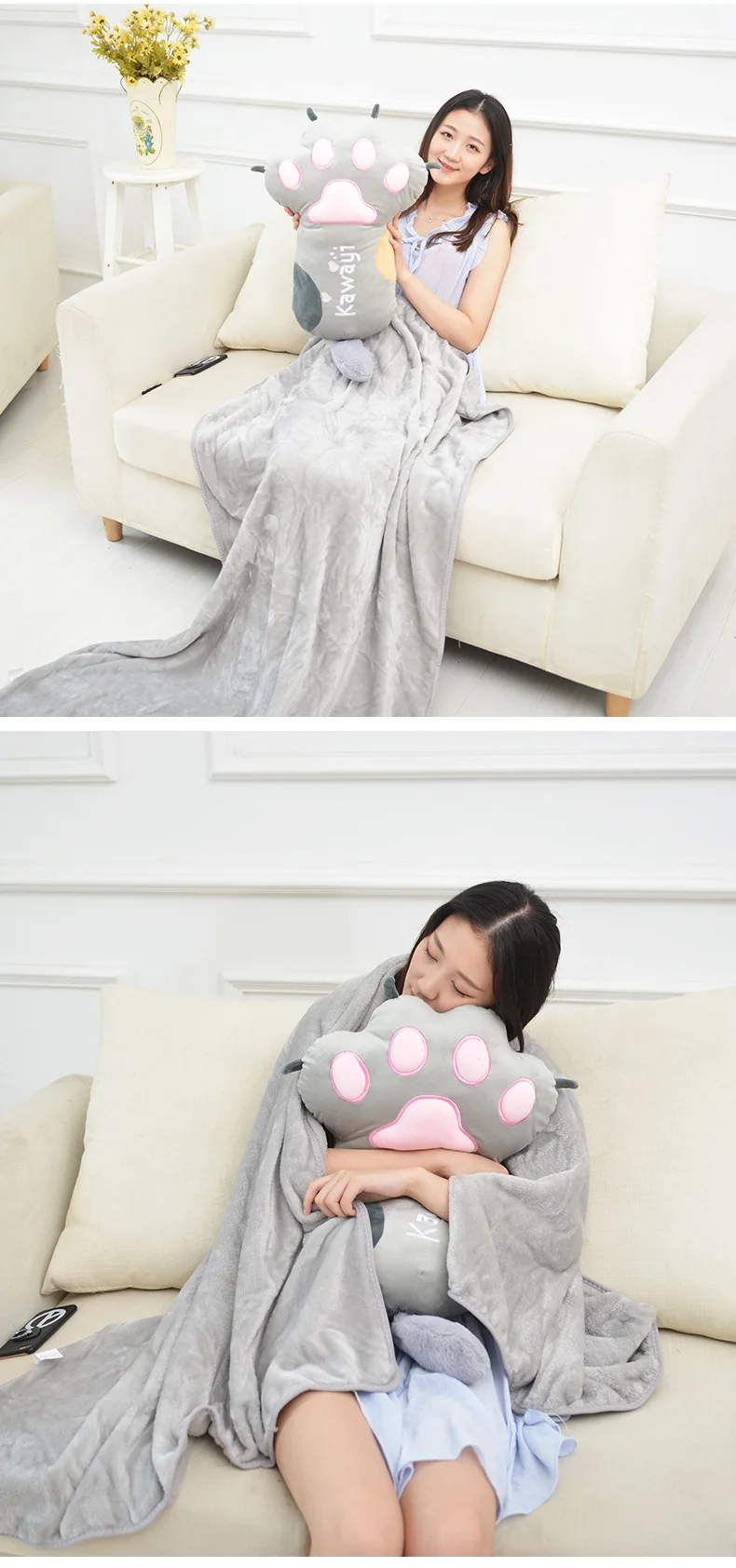 Милая мультяшная кошка, плюшевая игрушка, подушка для офиса, креативная подушка в виде кошачьей лапы, одеяло для сна, кондиционер, одеяло, подарок для ребенка