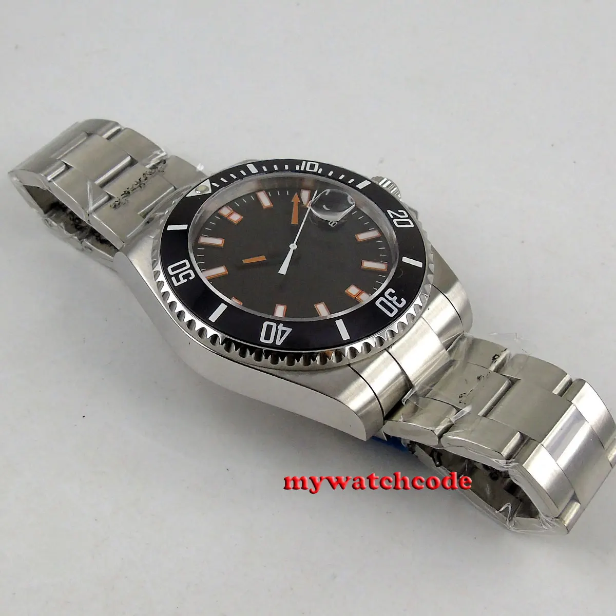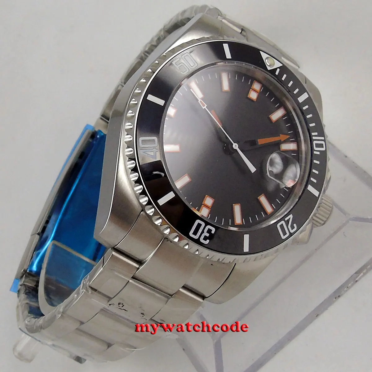 Чехол dimenter: 43 мм Чехол Толщина: 14 мм Циферблат: черный стерильный циферблат Механизм: автоматическое движение/движение с автозаводом Материал корпуса: твердый корпус из нержавеющей стали 316L Функция: окошко даты на 3 часа Ремешок: нержавеющая сталь 316L С украшением в виде кристаллов: Сапфир Стекло Тип застежки: раскладная пряжка