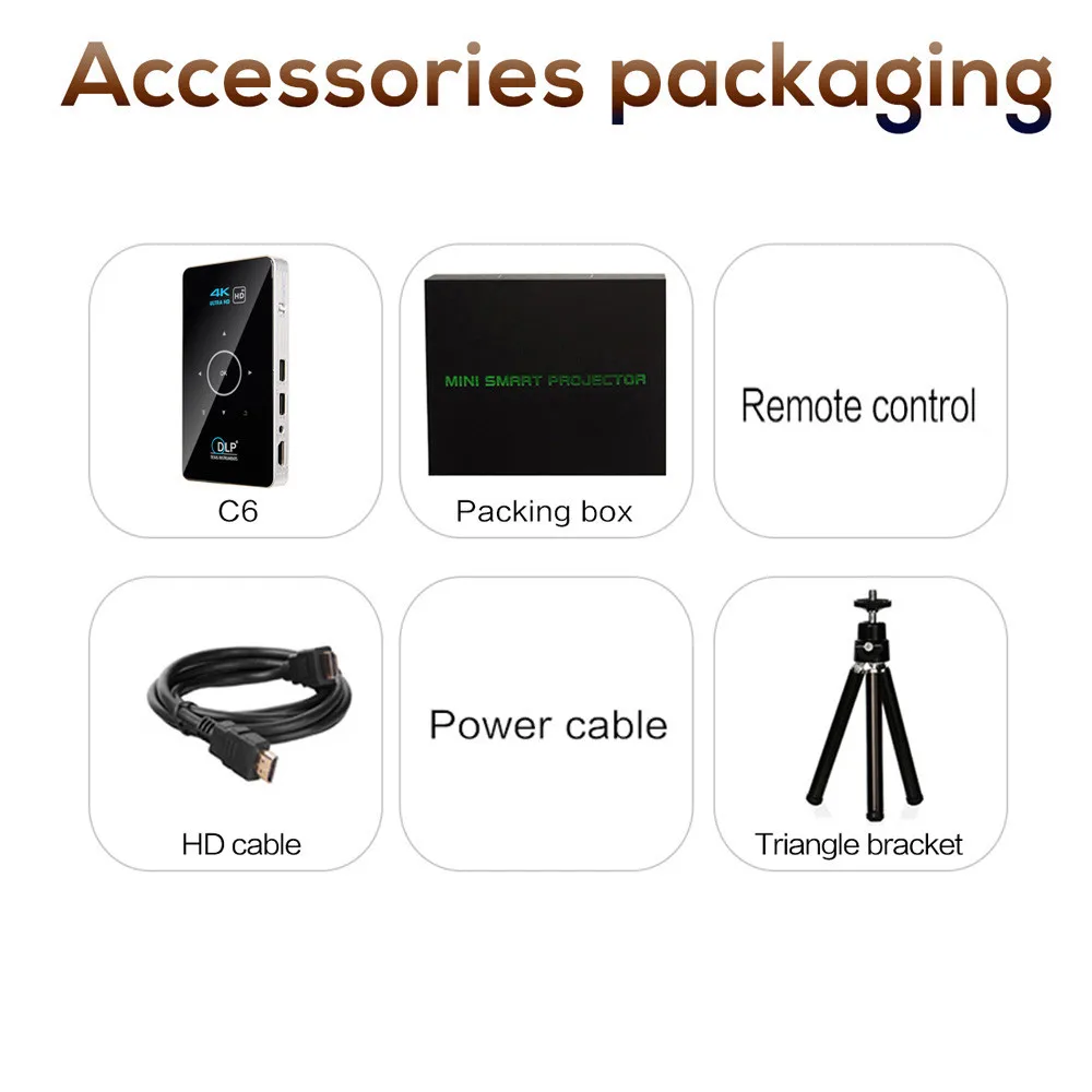1x мини-проектор 1x беспроводной пульт дистанционного управления 2,4G 1x HDMI кабель1 выдвижной держатель штатива