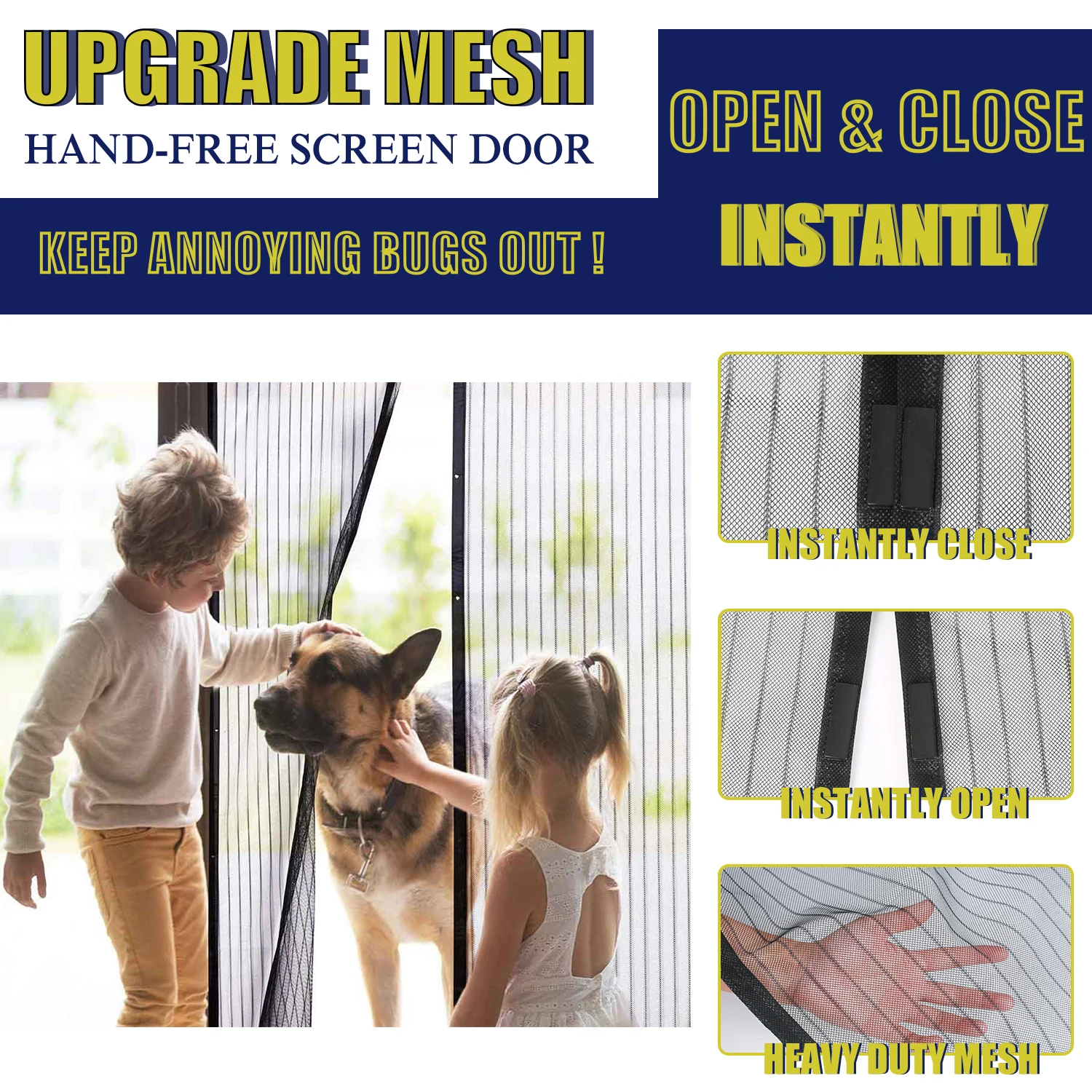 Без рук --- с мощными магнитами и полной рамкой, дверь экрана может открывается, а затем закрывается позади вас, это очень удобно и легко пройти, когда ваши руки полные.