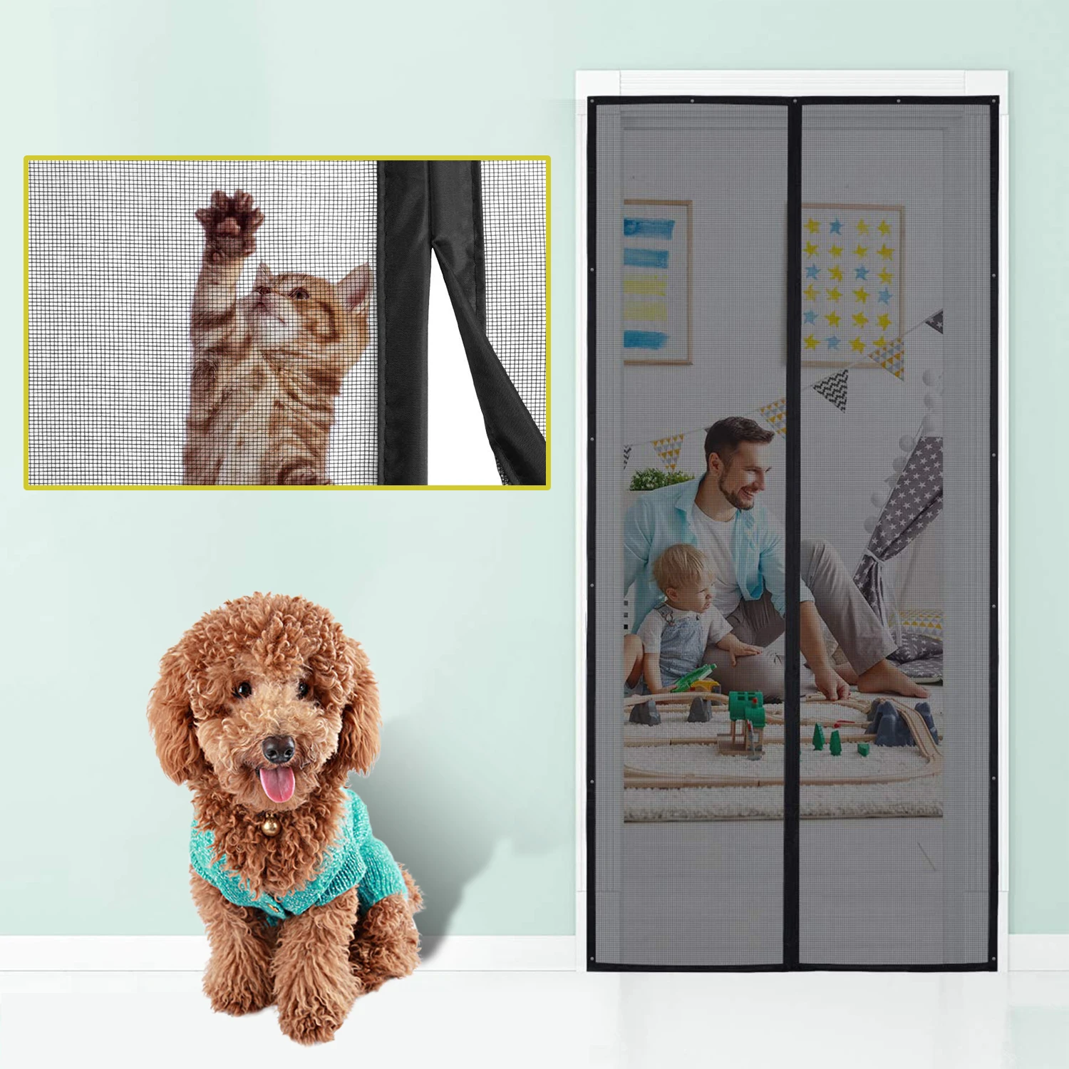 Мощный и изысканный --- есть 18 встроенных магнитов в среднем шве двери экрана, он может держать лучшее уплотнение и закрытие, а также легко открывается. Черная сетка может быть использована в качестве замены для фиксации двери экрана и хорошо сочетается с вашим домашним украшением.