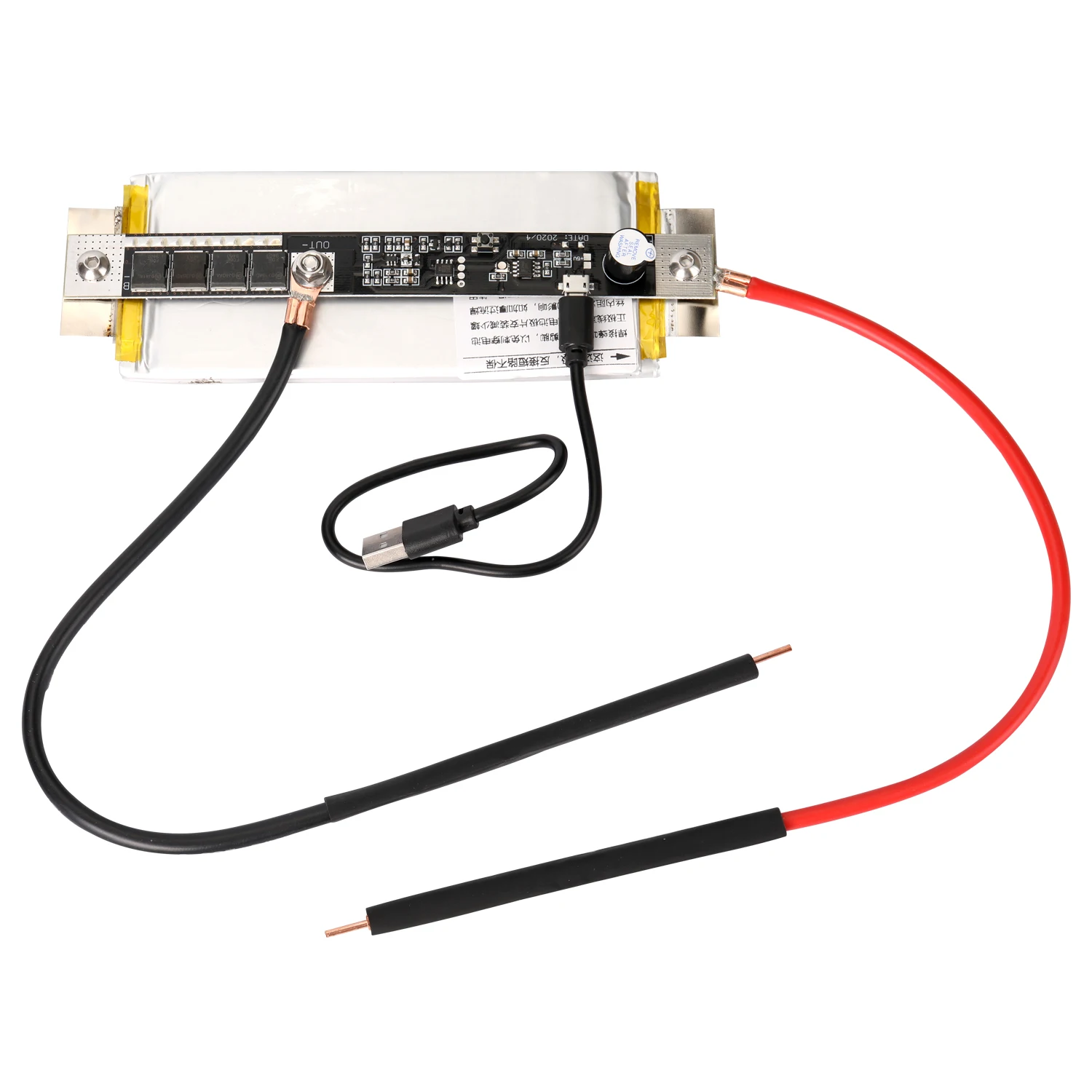 Это своего рода отличное качество DIY точечной сварки накопленной энергией, который оснащен сенсорным дисплеем 3,7-4,2 V, 4500mAh литиевая батарея, со скоростью разряда 100C и грузоподъемностью около 400A. Выход через трубку MOS, и энергия будет сосредоточена в конце сварочного пера, и он будет нагреваться от короткого замыкания, чтобы прочно предохранить никелевый лист с батареей. Переносится с помощью модуля управления зарядными устройствами, который заряжает аккумулятор через порт USB. Оснащен индикатором заряда светильник, красный во время зарядки и зеленый после полной зарядки. Вы можете попробовать.