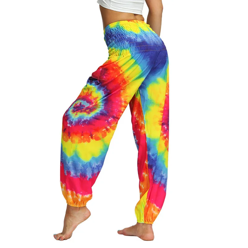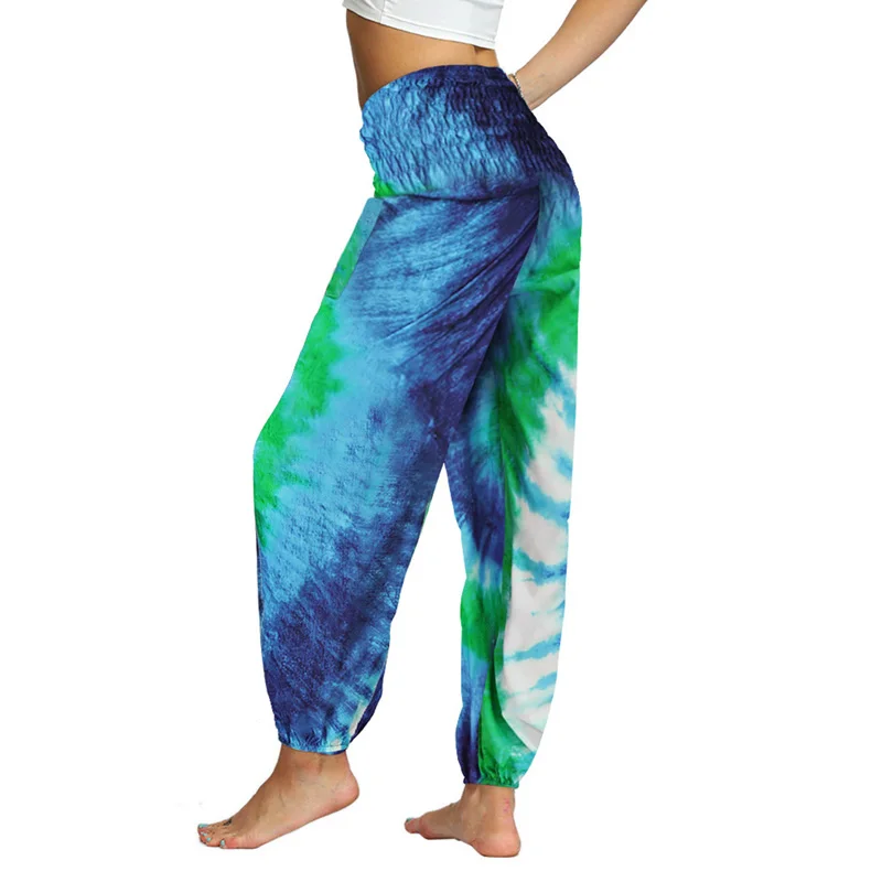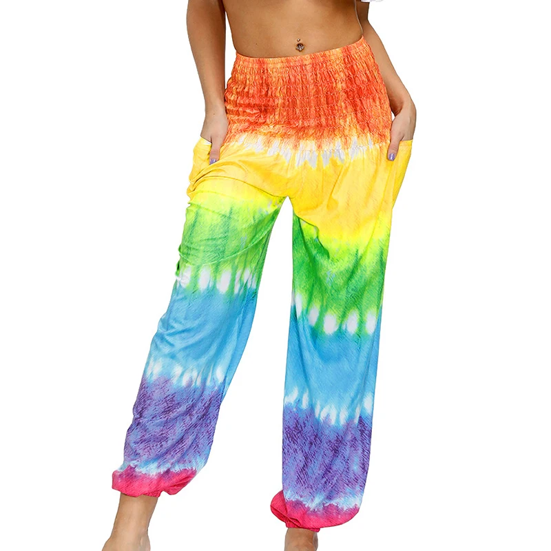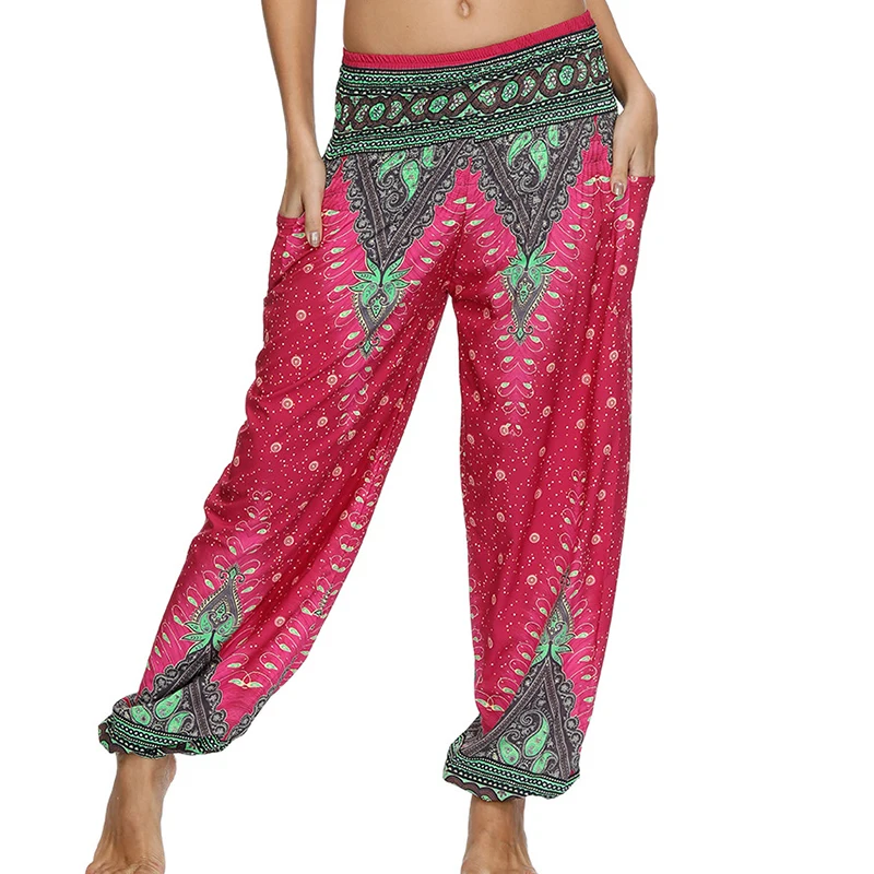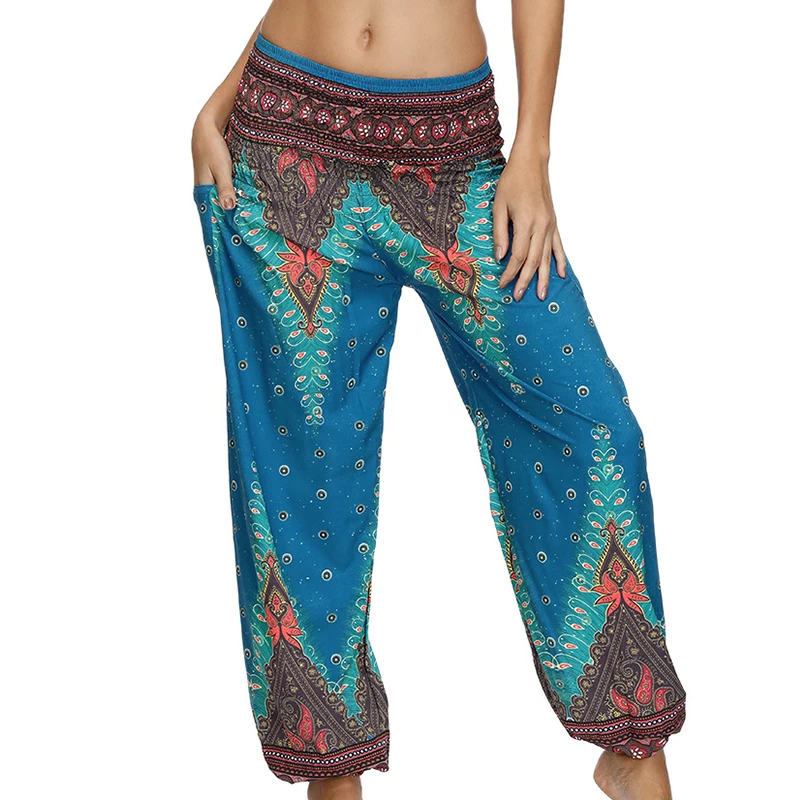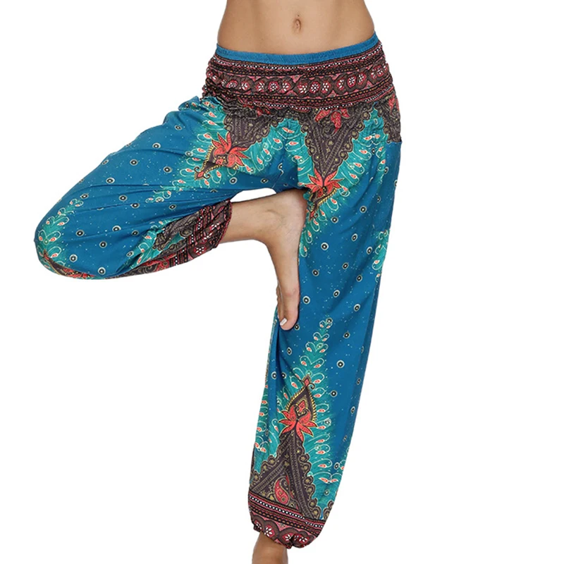 Женские Удобные Пляжные мешковатые брюки в стиле бохо, цыганские хиппи, брюки с эластичным поясом и принтом, повседневные свободные шаровары Aladdin.