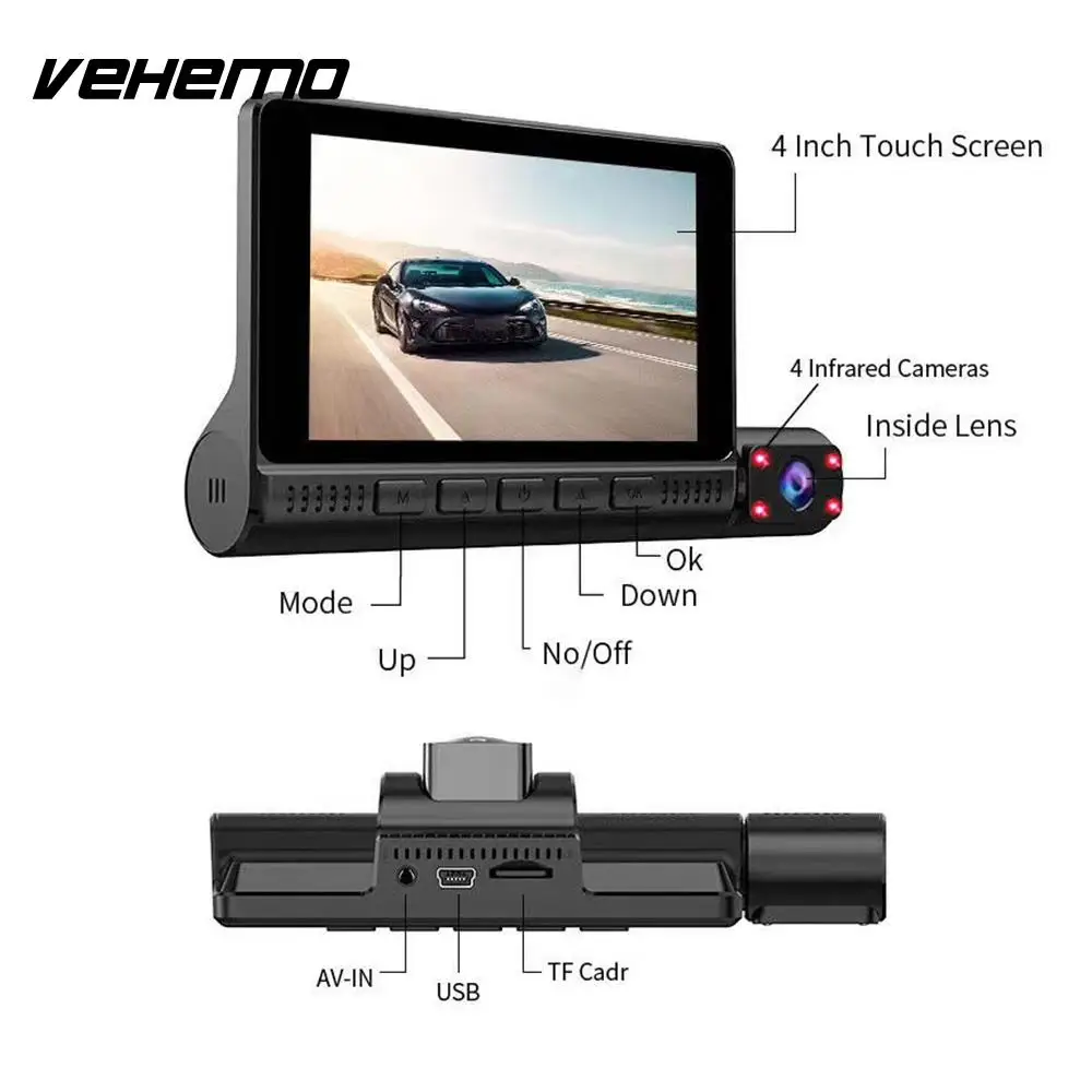 3 объектива: с 3 камерами для записи, фронтальная камера Full HD 1080P, камера заднего вида 480P, а внутренняя камера 720P, может записывать в любом месте вокруг вашего автомобиля и внутри вашего автомобиля.