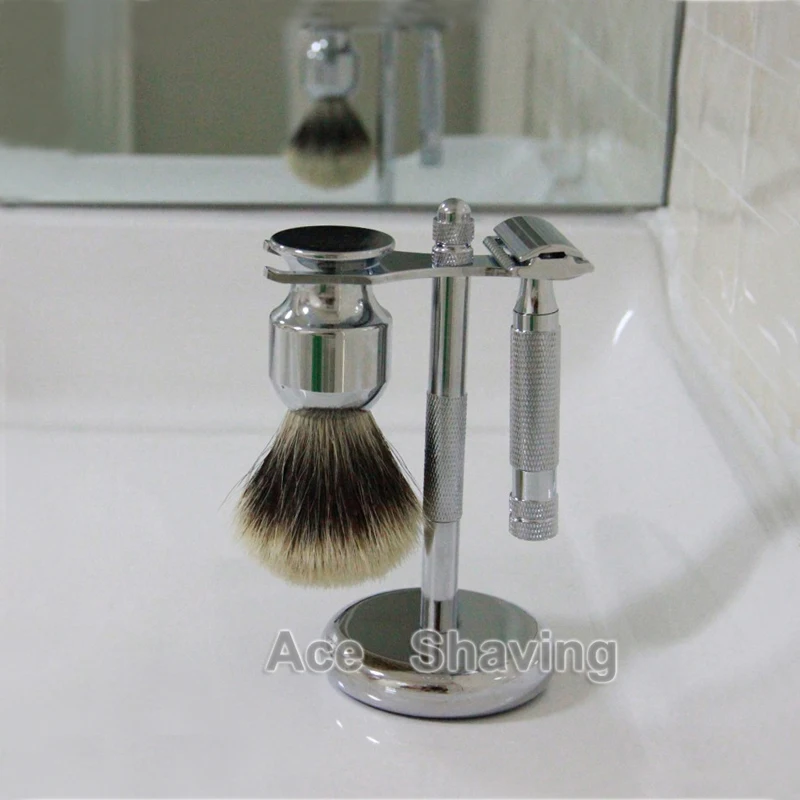Щетка 1. Лучшая щетка для бритья волос барсука. 2. Ручка изготовлена из хромового сплава из нержавеющей стали. 3. Общая длина кисти 108 мм, размер узла 22 мм, Высота волос 57 мм. Вес нетто кисти 124 г. Материал подставки: цинковый сплав Высота стойки: 151 мм Открытие держателя бритвы: 12 мм Открытие держателя щетки для бритья: 27 мм Вес около 225 г Из нержавеющей стали чаша 1. Изготовлен из меди с хромированным покрытием. 2. Вес нетто 77 г. 3. Самый большой внутренний диаметр 68 мм, нижний внутренний диаметр 40 мм, глубина 41 мм.