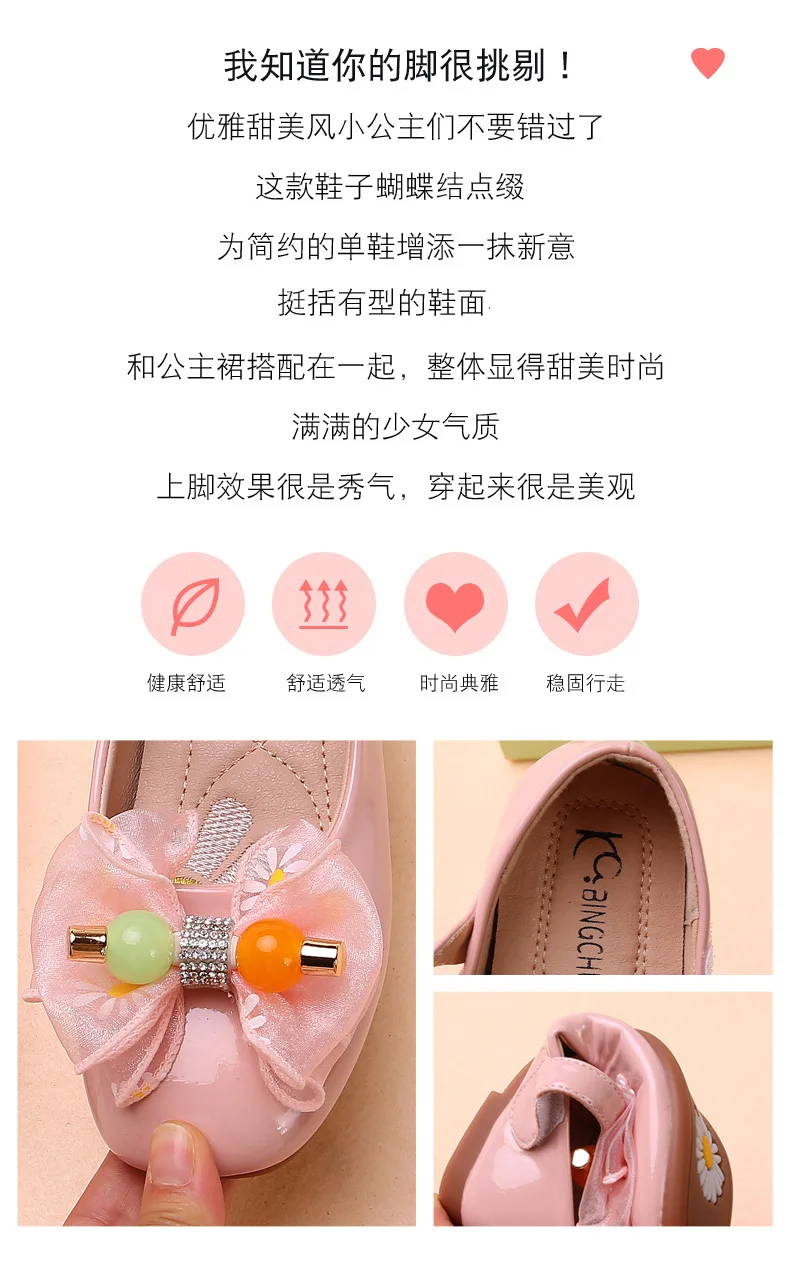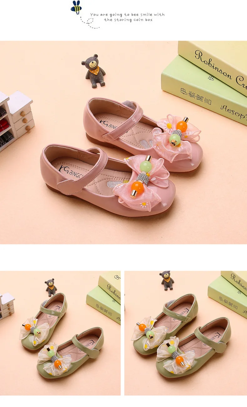 Новинка весны и осени 2020, милые туфли принцессы для девочек, кожаные туфли с бантом, детская обувь, От 6 до 12 лет