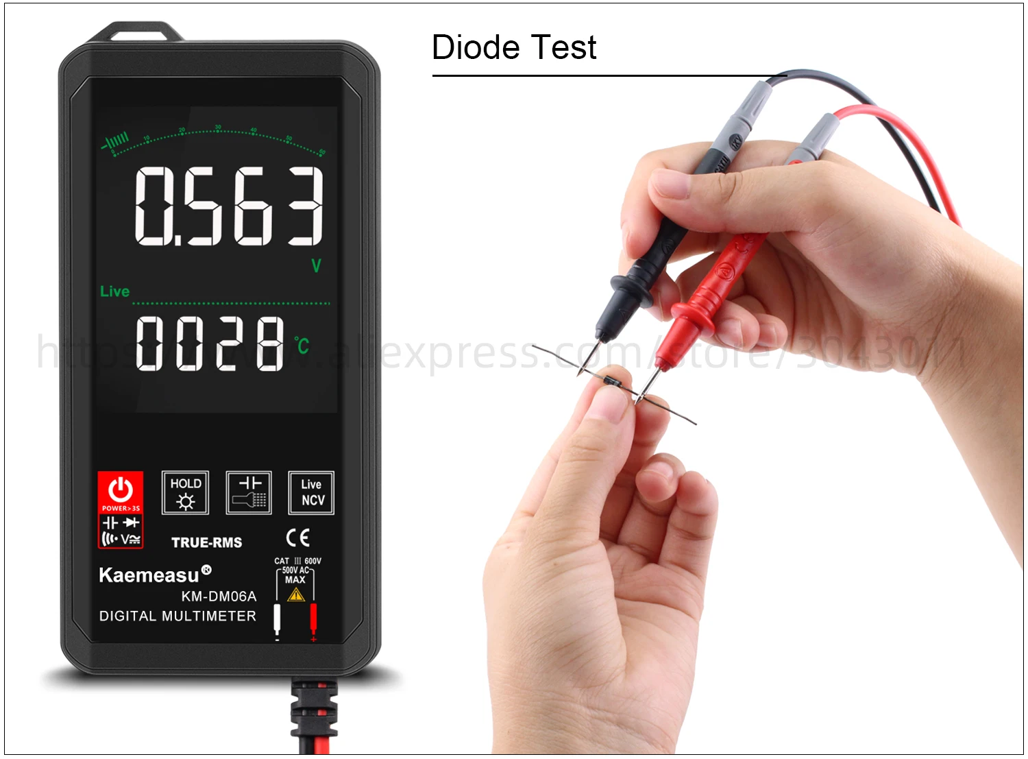 Напряжение постоянного тока DCV: 6 В/60 в/600 В/1000 в Переменное напряжение ACV: 6V/60V/600V/750V Резистор: 600Ω/6k Ω/60k Ω/600k Ω/6M Ω/60MΩ Конденсатор с алюминиевой крышкой: 10nF/100нф/1 мкФ/10 мкФ/100 мкФ/1mF/10mF/60Mf Частота: 10 Гц/100 Гц/1 кГц/10 кГц/100 кГц/1 МГц/8 МГц Тест на диод/непрерывность: √ Сенсорный ключ: √ Непрерывная мощность: √ NCV : √ Тест на нулевую линию/пожарную линию: √ Полный символ единицы: √ Подсветка ручная/автоматическое выключение: √ Истинное измерение RMS: √ Температура (℃/℉): √ Освещение фонарика: √